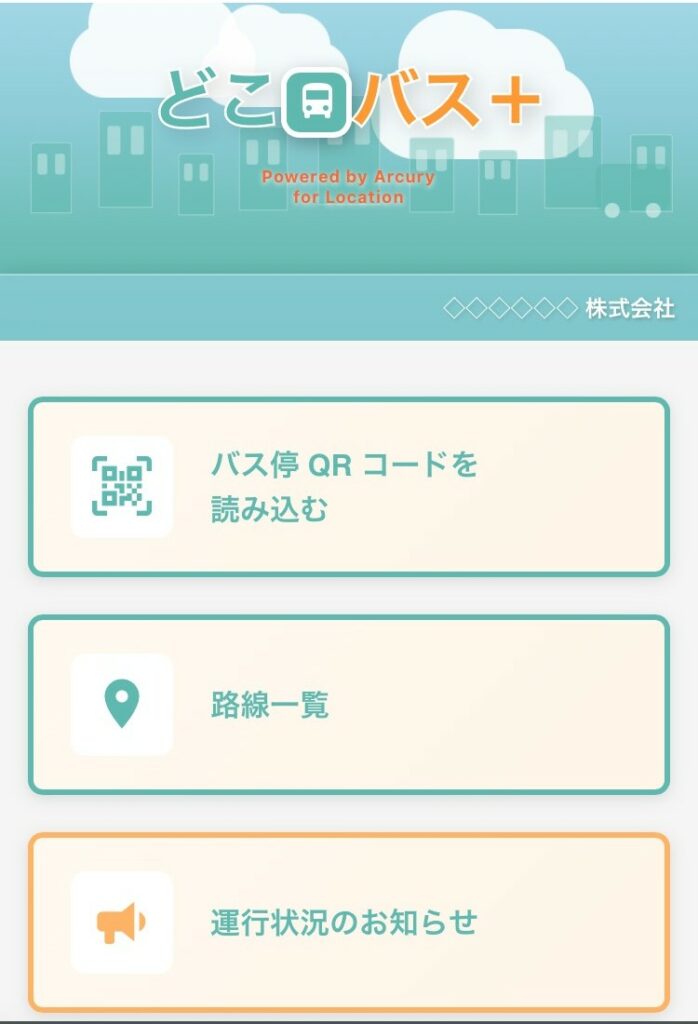 どこバス+のトップ画面には、3つのメニューが並んでいます👀