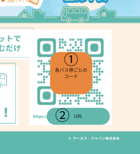 このQRコードは、バス停ごとに専用のものが貼り出されます。