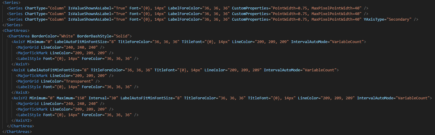 AxisY2 To Minimum="0" Maximum="150" Interval="30" Add (for achievement rate)